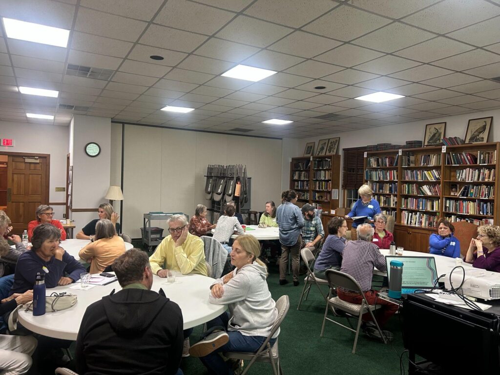 Attendees of Green Amendments For The Generations’ Resolution Training at Medford Friends Meeting practice telling their environmental stories and what an NJ Green Amendment would mean to them.